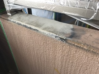 シールの打ち替え、洗浄が終わり塗装前の養生に入っております。
